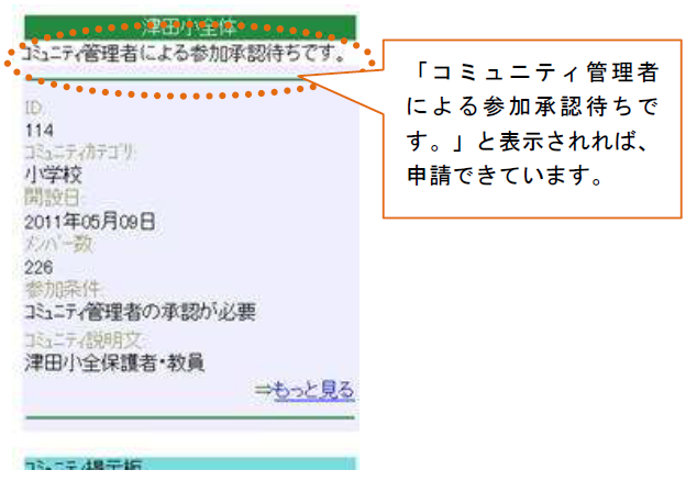 続けて登録する場合は、「(3)コミュニティの検索」に戻って登録をしてください。