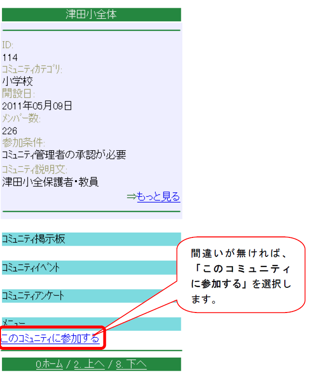 参加したいコミュニティであることを確認し、「このコミュニティに参加する」をクリックします。