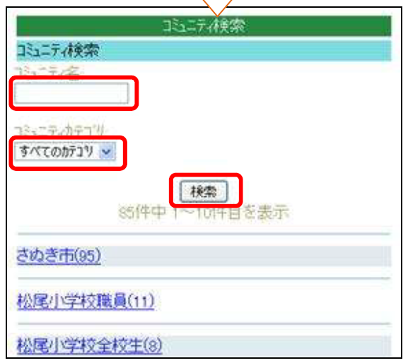 コミュニティ名にキーワードを入れ、コミュニティカテゴリを選択して検索をクリック
