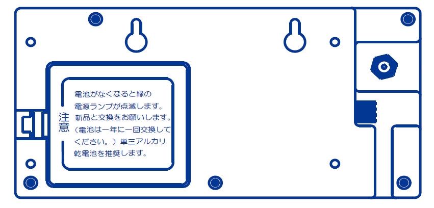 乾電池は消耗すると液漏れする恐れがあり、漏れた液が端末内部を腐食して端末が故障する場合があります。また、電池切れのままでは停電時に端末が使えなくなりますので、1年を目安に定期的な交換をお勧めします。