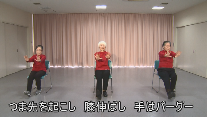 「立つ」「座る」「子ども」の3パターンの体操がありますので、自分が気持ちいいと思える範囲で、笑顔で行ってください。